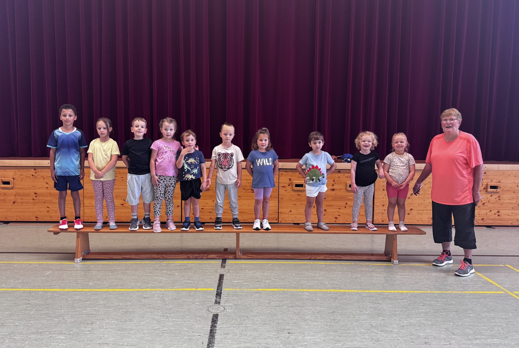 Am 16.07.2025 lud unsere Gabi Fröhlich in die Graf-von-Lauffen-Halle (Dilsberg) zum fröhlichen, bewegungsreichen und alljährlichen Kinderwettkampf ein, bei dem sich Kinder im Alter von drei bis sechs Jahren wieder sportlich messen konnten. Bei bestem Wetter und ausgelassener Stimmung zeigten die kleinen Teilnehmerinnen und Teilnehmer ihr Können in den Disziplinen Wettlauf, Weitsprung und Weitwerfen. Unter den stolzen Blicken ihrer Eltern gaben die Kinder alles – und wurden dafür am Ende des Tages mit Urkunden und Gummibärchen belohnt.